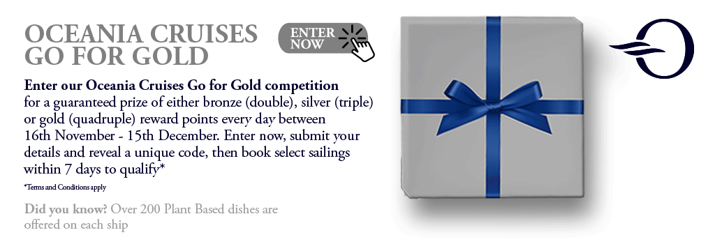 Join Oceania Rewards to earn points when you make a verified claim for your booking with Oceania Cruises. Points can be accumulated and redeemed for retail gift codes to use at Amazon, John Lewis, Waitrose and Love2Shop.